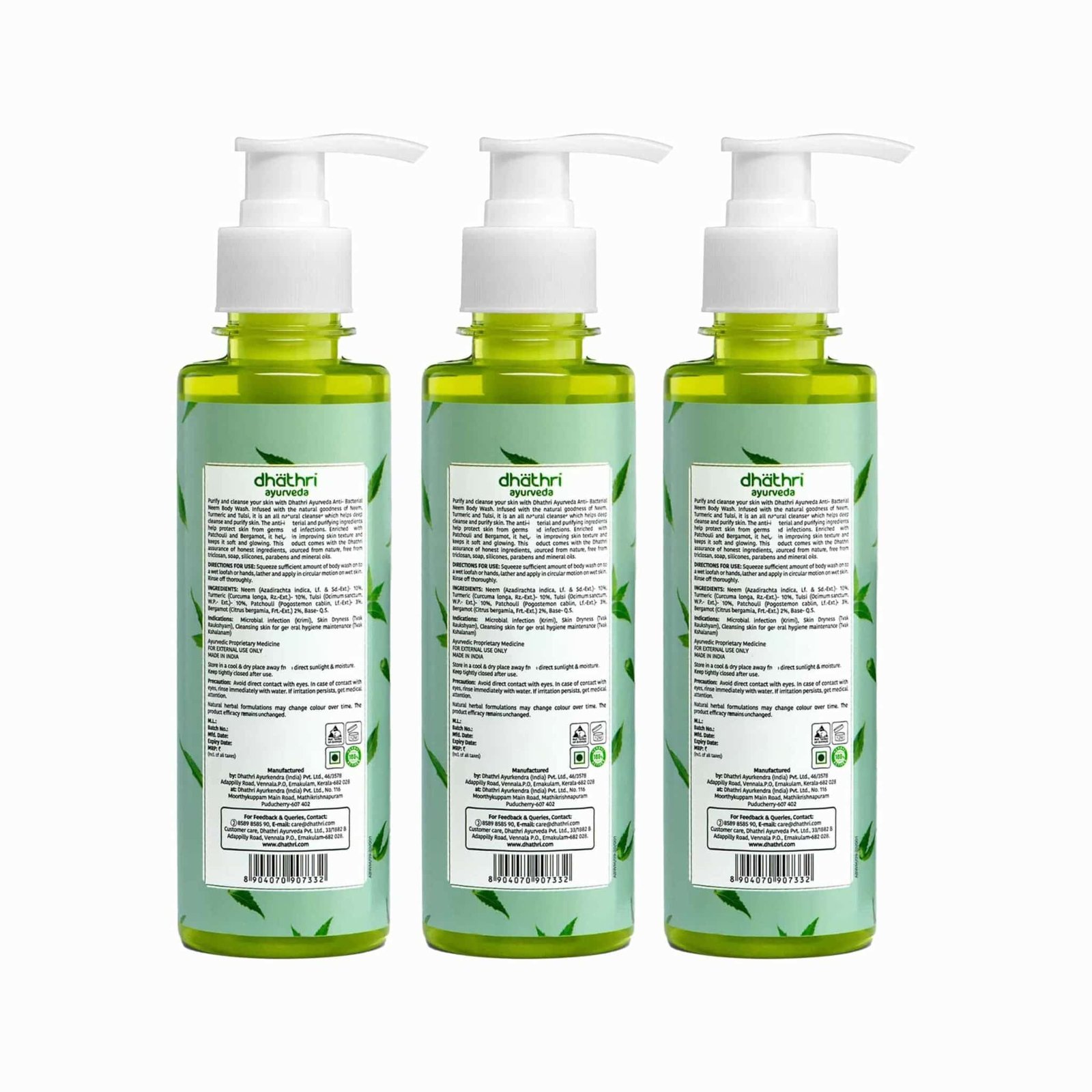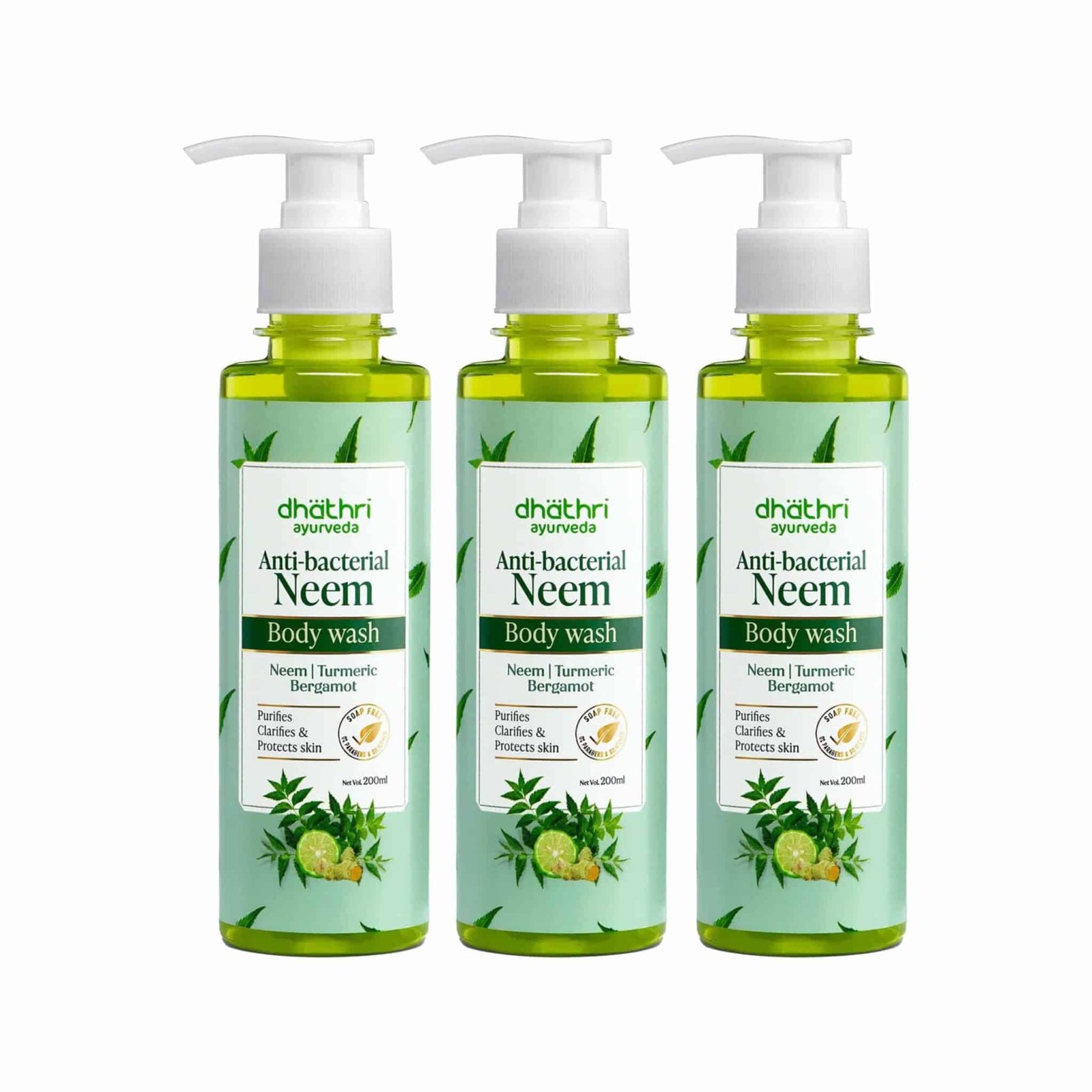 This body wash combo offer includes a bundle of 3 Dhathri Anti-bacterial Neem Body Wash. This body purifies and protects your skin, leaving your skin well protected from germs and bacteria. Besides deep purification, this herbal body wash also forms an antibacterial protective layer around your skin.