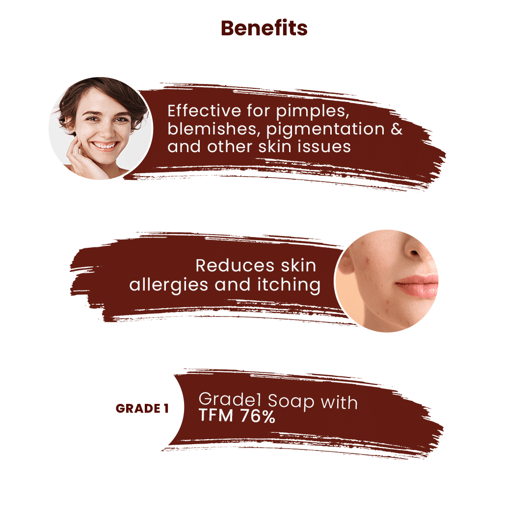 Dhathri Raktha Chandan Soap is a grade 1 soap with a total fatty matter (TFM) of 76%. This means that it is a high-quality soap that contains a high percentage of natural oils and fats, making it ideal for nourishing and moisturizing your skin. Unlike many commercial soaps that can strip your skin of its natural oils, this soap is gentle and nourishing.