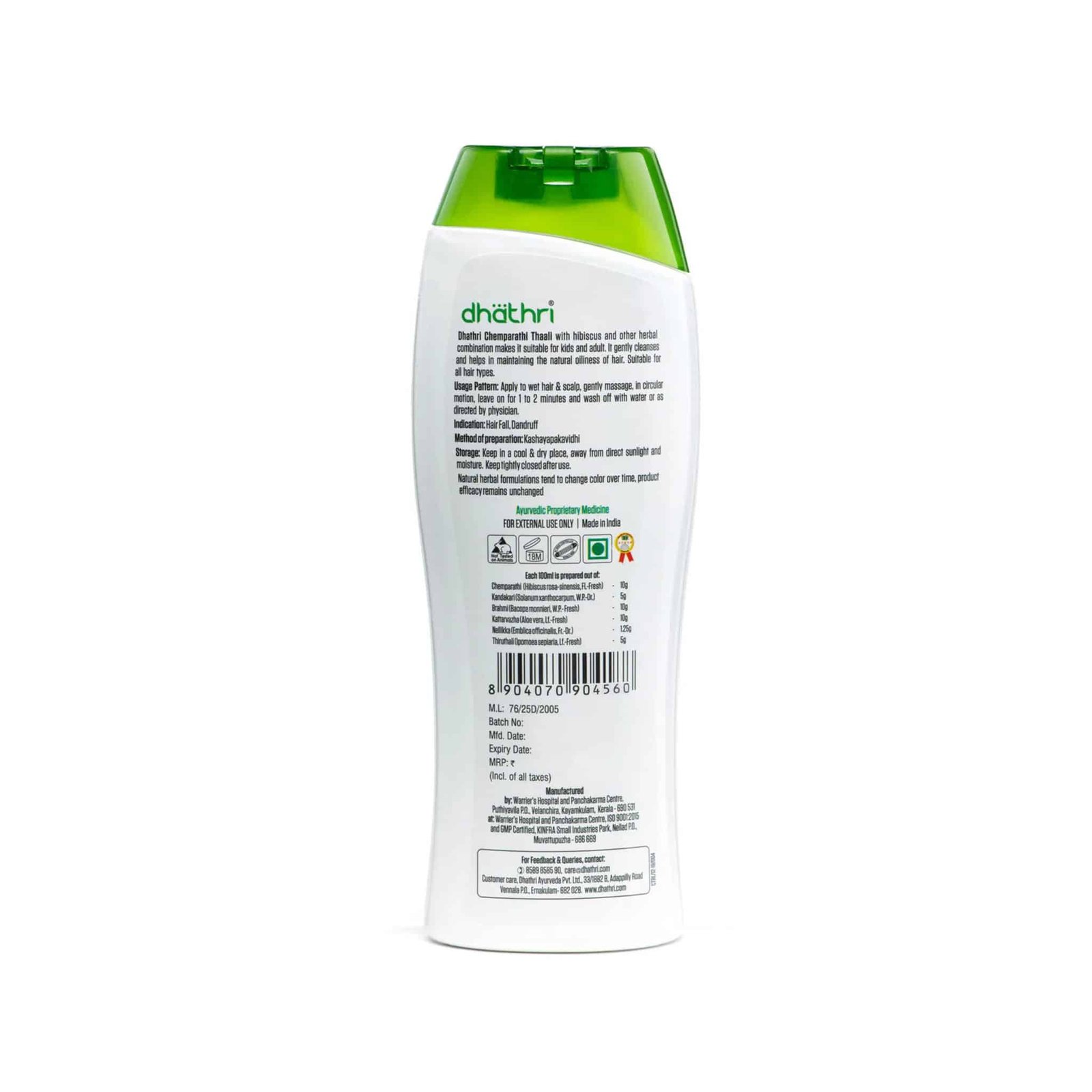 Why is Dhathri Chemparathi Thaali the best for hair care? It is the best natural hair cleanser available in the market because it is made using natural ingredients. It is a gentle herbal cleanser that not only cleanses your hair and scalp but also nourishes and strengthens them. The presence of hibiscus in the product helps in maintaining the pH balance of the scalp, thereby preventing dandruff and making your hair soft and smooth.