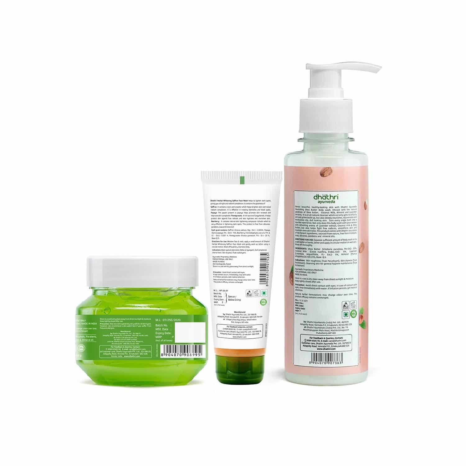 When it comes to daily skincare, this grooming kit for women reigns supreme. Along with choosing the best hair products. This combination of the Moisturizing Aloe Vera Gel, Dhathri Saffron Face Wash, and Shea Butter Body Wash provide a holistic skincare regimen that caters to your skin’s needs, making it the ultimate choice for your daily skincare routine. Enhance the transformative effects of the grooming kit for men from Dhathri and witness the remarkable improvement in your skin’s appearance and texture. Buy Dhathri Ultimate Grooming Kit and indulge in the joy of nourished, radiant, and healthy skin every day.